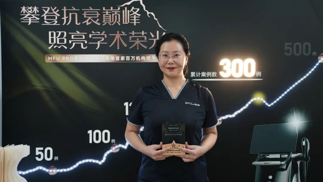 此次授予儀式上,凈妍生物學術經理Elaine Zhou代表凈妍生物和MFUpro美拉美,將“領耀名星機構”的榮譽證書授予重慶米蘭柏羽及其全體醫師學者。重慶米蘭柏羽正式成為MFUpro美拉美超聲刀百萬發計劃—西南首家百萬發機構。這不僅是對醫師專業精神與機構卓越貢獻的致敬,也是對微聚焦超聲抗衰美學的堅守和承諾。