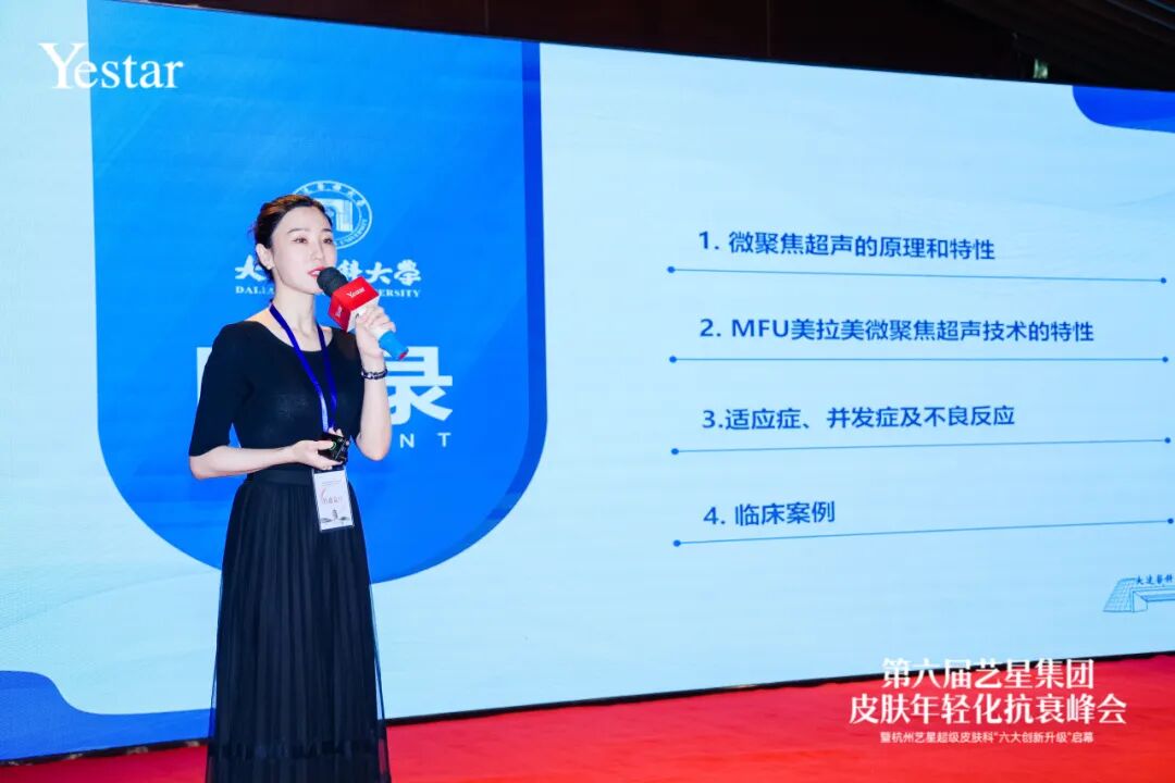 凈妍生物特邀劉小嬌博士攜手MFUpro美拉美參與本次杭州抗衰老峰會(huì)。劉小嬌博士針對(duì)《MFUpro美拉美超聲刀在面部年輕化治療的應(yīng)用》進(jìn)行了專業(yè)的知識(shí)分享。