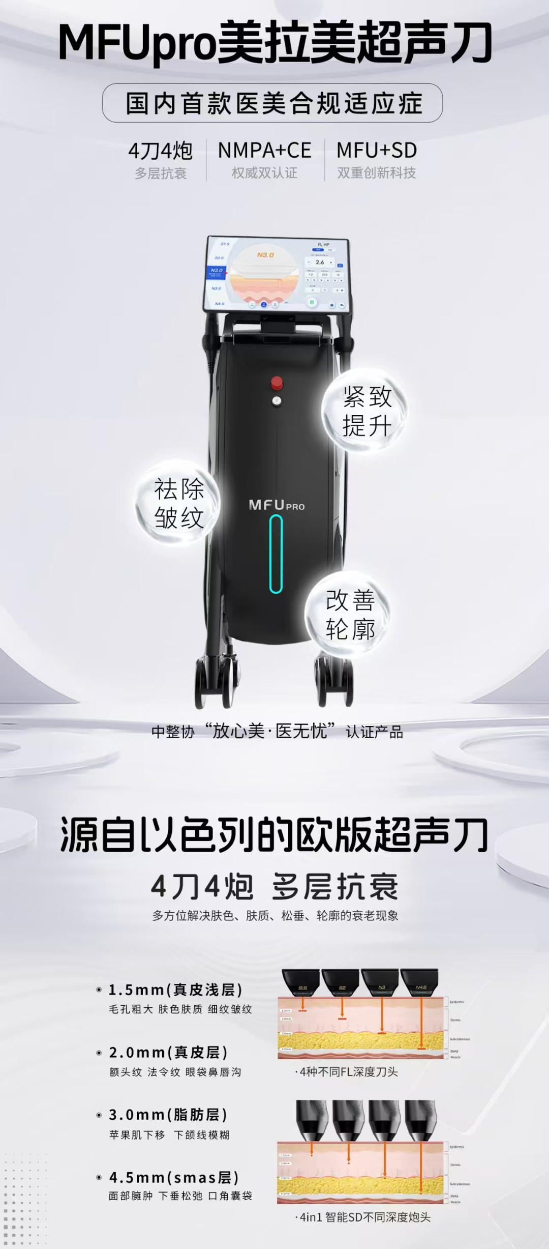 多維度解讀MFUpro美拉美超聲刀作為國(guó)內(nèi)首款醫(yī)美合規(guī)適應(yīng)癥如何利用微聚焦超聲精準(zhǔn)作用于皮膚層進(jìn)行面部皮膚的抗衰應(yīng)用;以及其卓越的MFU+SD雙重創(chuàng)新科技和4刀4炮多層抗衰的美學(xué)優(yōu)勢(shì)。