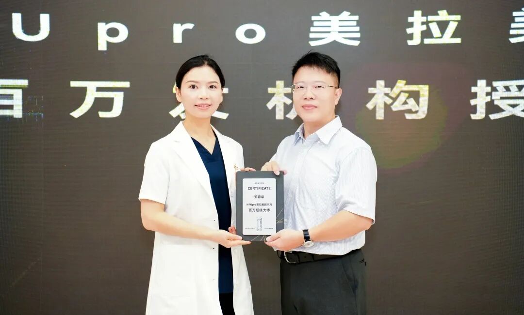 授予儀式上,重慶美侖美奐黃義森、金嵐、鄧春華三位醫(yī)師榮獲MFUpro美拉美超聲刀授予的“百萬超級(jí)大師”榮譽(yù)認(rèn)證。