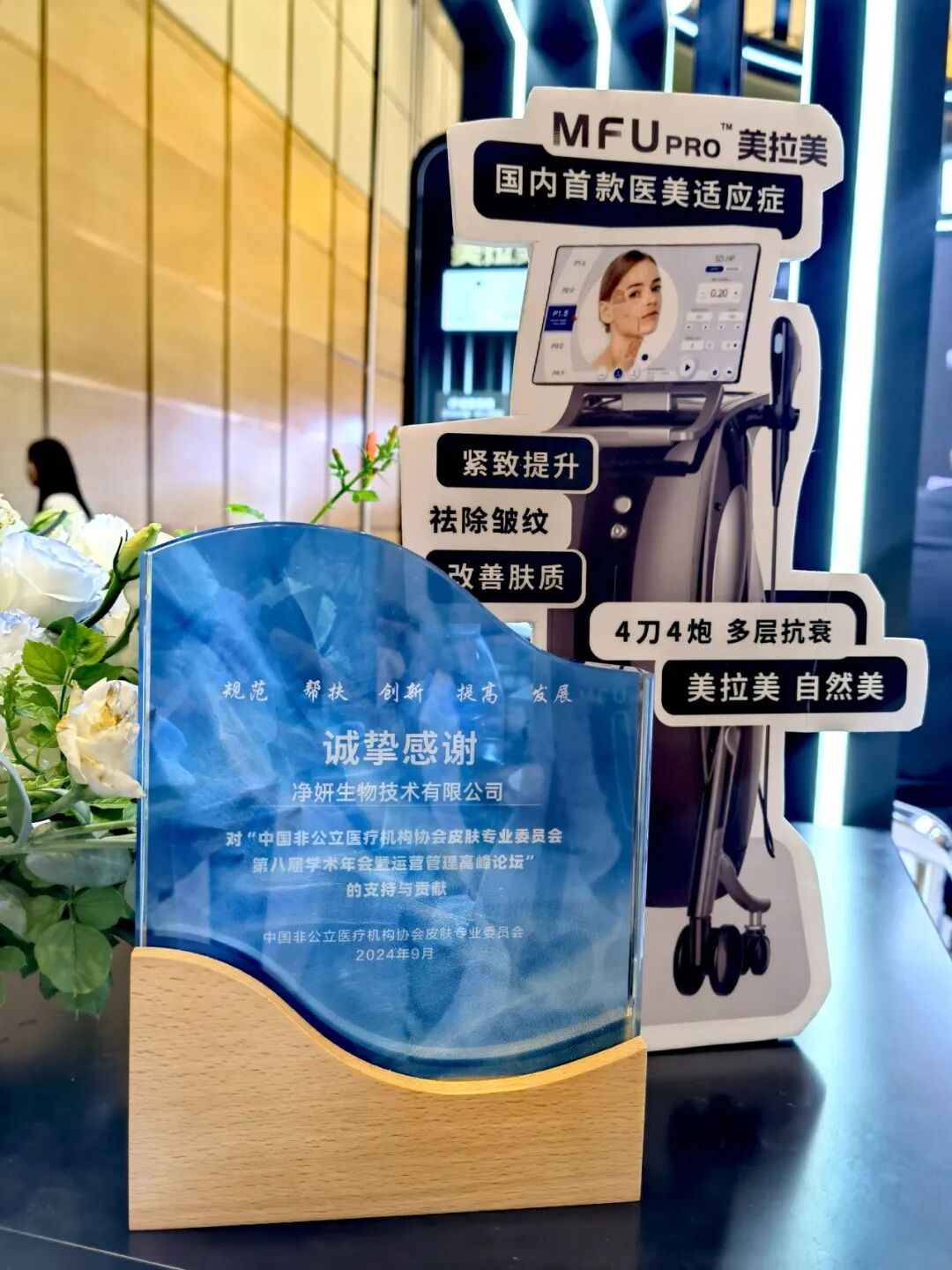 凈妍生物攜旗下產品MFUpro美拉美超聲刀參加了此次盛會,在A15展位現場和專題會上再創高峰。MFUpro美拉美超聲刀以其卓越的技術和美學理念,再次確立了其在行業內的先進地位,不僅展示了技術創新與美學設計的完好融合,同時也強調了企業在合規經營與社會責任方面的堅定承諾。