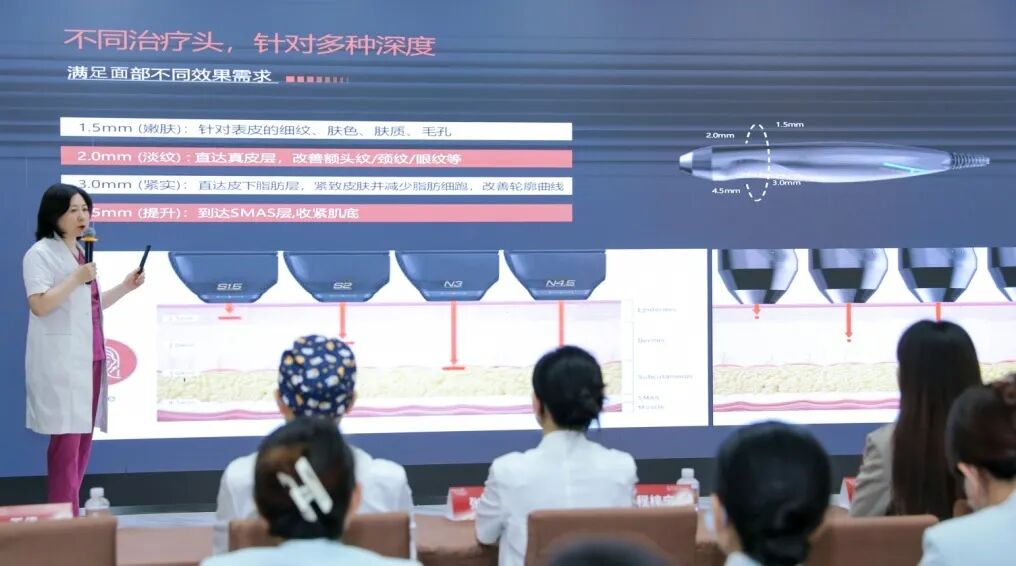 MFUpro美拉美作為國內首款醫美合規適應癥的歐版超聲刀,MFU(微聚焦科技)+SD(協同聚點科技)核心雙科技及其特有的4刀4炮8種不同治療類型在實現精準、高效、多層抗衰上的優勢特性,揭示了MFUpro美拉美前沿的抗衰美學理念。