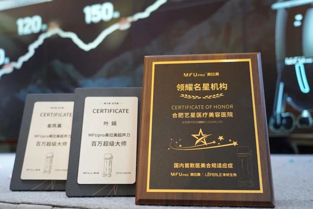 與此同時(shí),合肥藝星崔陳晨、葉娟兩位醫(yī)師榮獲MFUpro美拉美超聲刀授予的“百萬(wàn)超級(jí)大師”榮譽(yù)認(rèn)證。