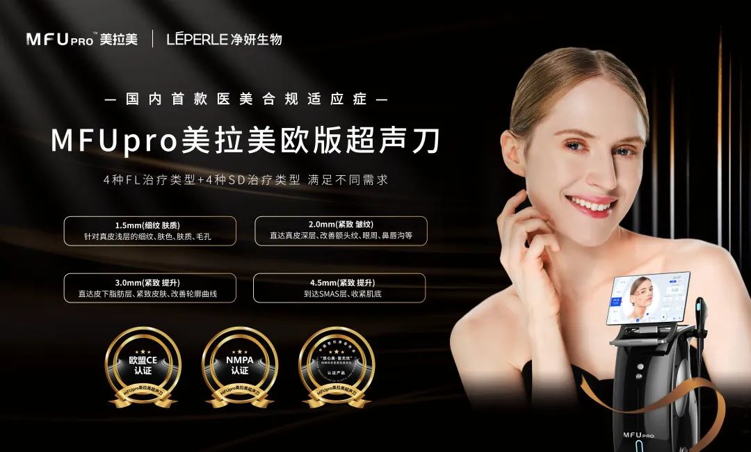 與此同時,凈妍生物攜旗下MFUpro美拉美歐版超聲刀亮相大會二樓01展臺。MFUpro美拉美超聲刀作為國內首款醫美合規適應癥超聲儀器;不僅契合了大會合規發展的核心理念,更憑借其先進的MFU+SD雙重創新科技,以及特有的4刀4炮多層抗衰,展示出卓越的抗衰效果,吸引了眾多行業內外人士的高度關注。