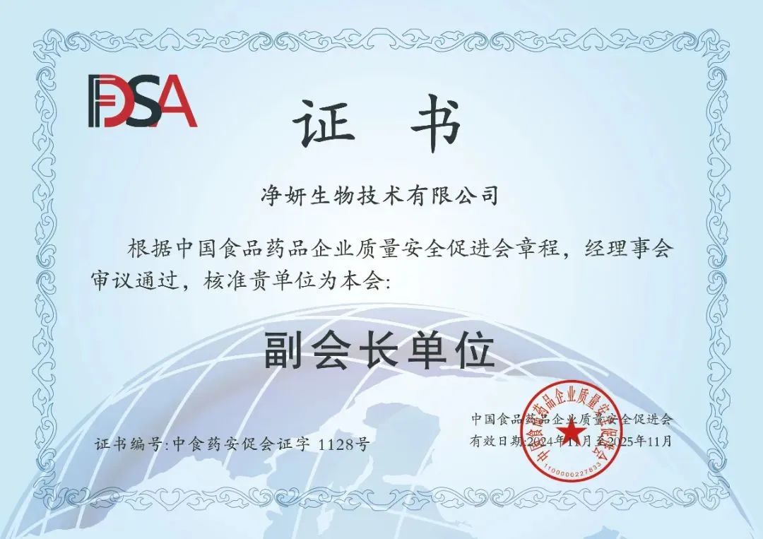 2024年11月15-17日,中國食藥安全促進會首屆醫美抗衰高質量大會在中國北京隆重舉辦!凈妍生物榮獲中國食品藥品企業質量安全促進會副會長單位。