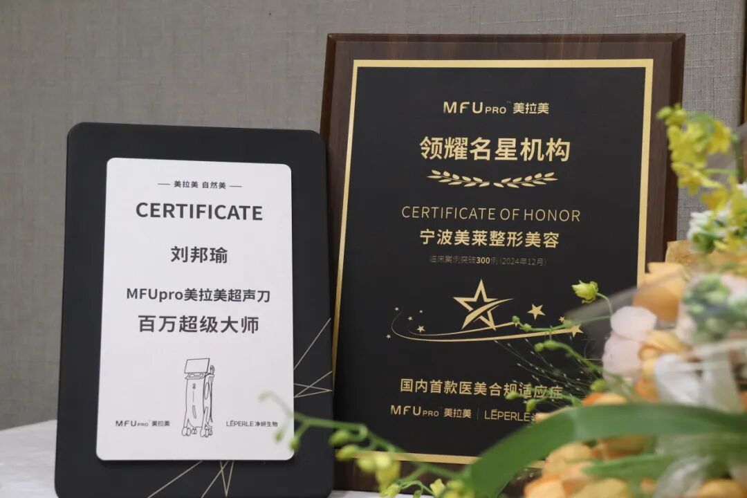 與此同時,寧波美萊劉邦瑜院長榮獲MFUpro美拉美超聲刀授予的“百萬超級大師”榮譽(yù)認(rèn)證。