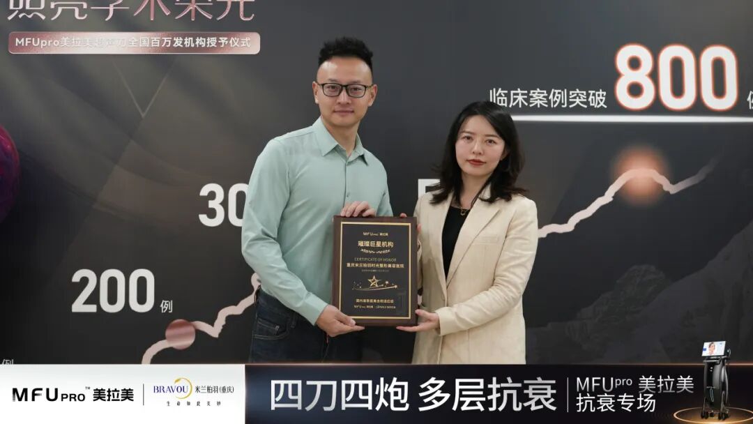 2024年12月7日,MFUpro美拉美全國百萬發(fā)機構(gòu)授予儀式在重慶米蘭柏羽隆重舉辦!重慶米蘭柏羽憑借其卓越的專業(yè)實力和高效的執(zhí)行力,正式摘得“璀璨巨星機構(gòu)”的榮譽,臨床累計案例成功突破800例,標(biāo)志著一個全新的里程碑。