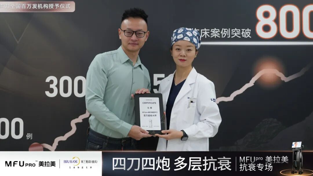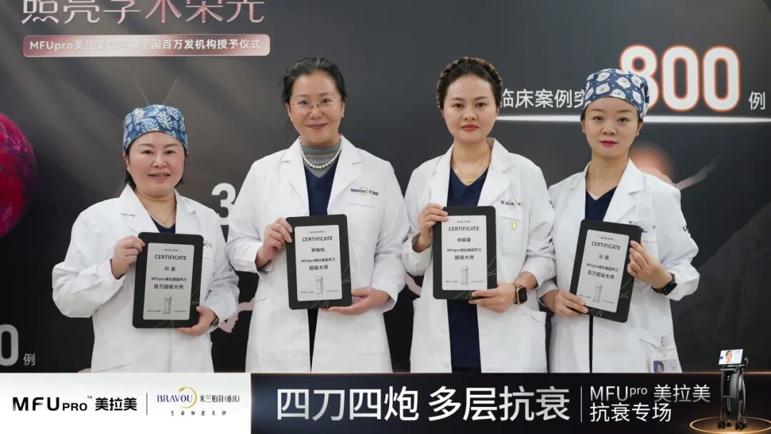 與此同時,重慶米蘭柏羽劉晏、馬麗兩位主任榮獲MFUpro美拉美超聲刀授予的“百萬超級大師”榮譽認(rèn)證。