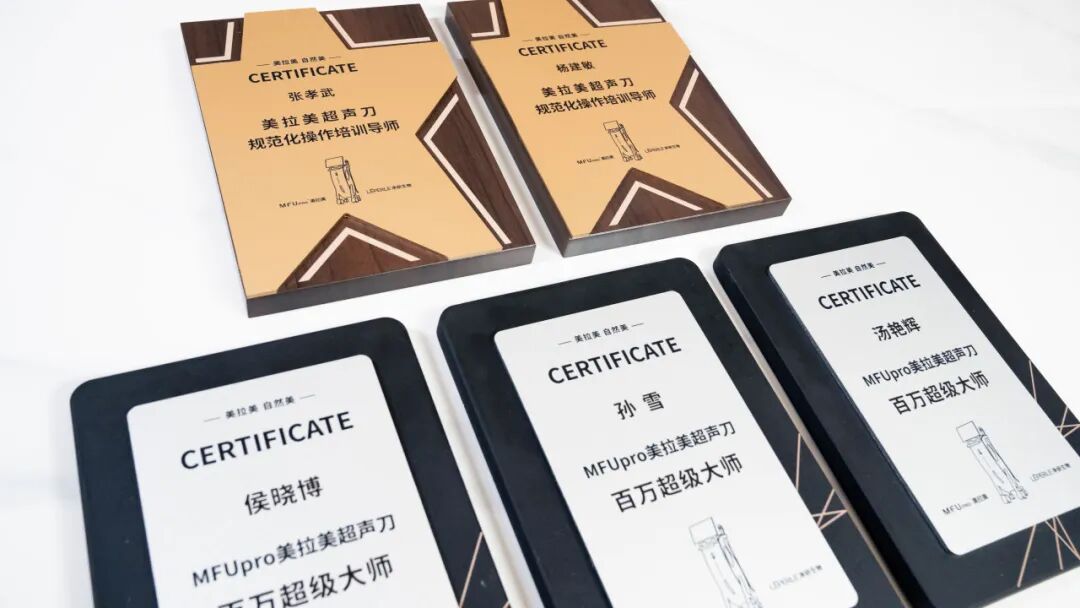 與此同時,天津河東美萊皮膚科湯艷輝、侯曉博、孫雪三位院長因在臨床上的出色表現,被MFUpro美拉美超聲刀授予“百萬超級大師”榮譽認證。