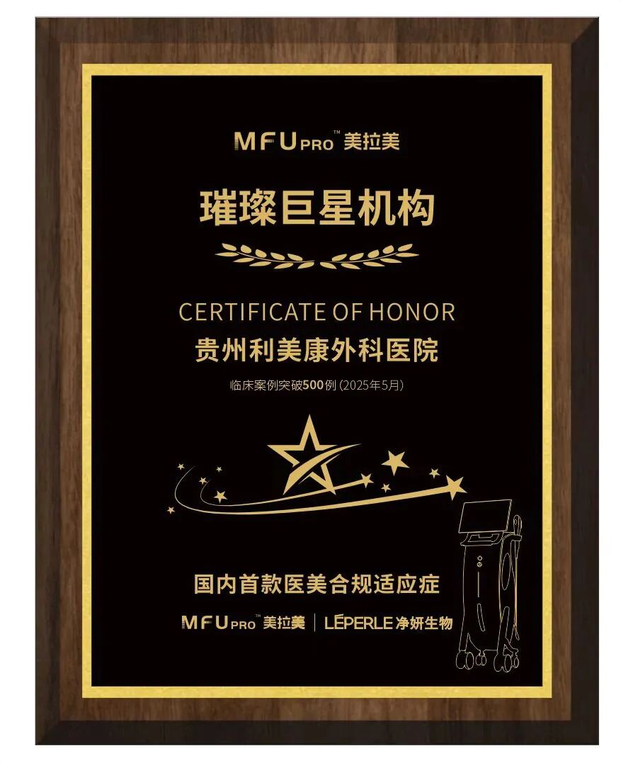 2025年5月25日,MFUpro美拉美全國百萬發機構授予儀式在貴州利美康隆重舉辦!臨床累計案例正式突破500例,摘得“璀璨巨星機構”榮譽!
