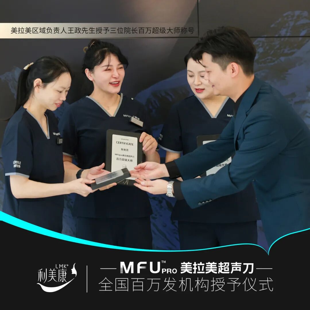 值此重要時刻,貴州利美康貴州利美康非手術中心胡佳秀、朱俐芳、張小玲三位院長,因其在臨床案例上的杰出貢獻和個人成就,被MFUpro美拉美超聲刀授予"百萬超級大師”榮譽稱號。