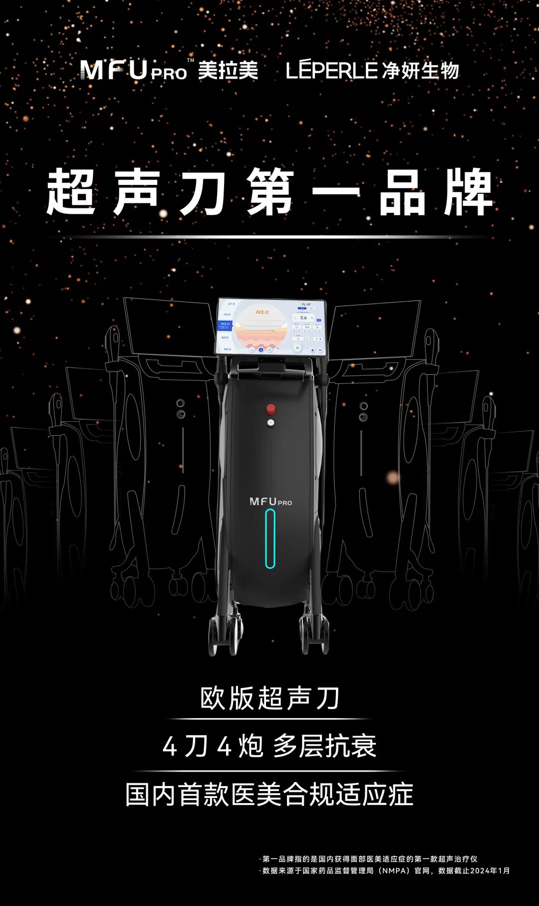 ·第一品牌指的是國內獲得面部醫美適應癥的第一款超聲治療儀