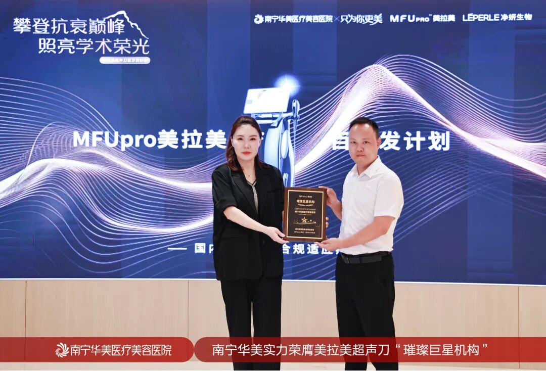 2025年6月27日,MFUpro美拉美全國百萬發(fā)機構(gòu)授予儀式在南寧華美隆重舉辦!臨床累計案例正式突破500例,喜獲“璀璨巨星機構(gòu)”榮譽!