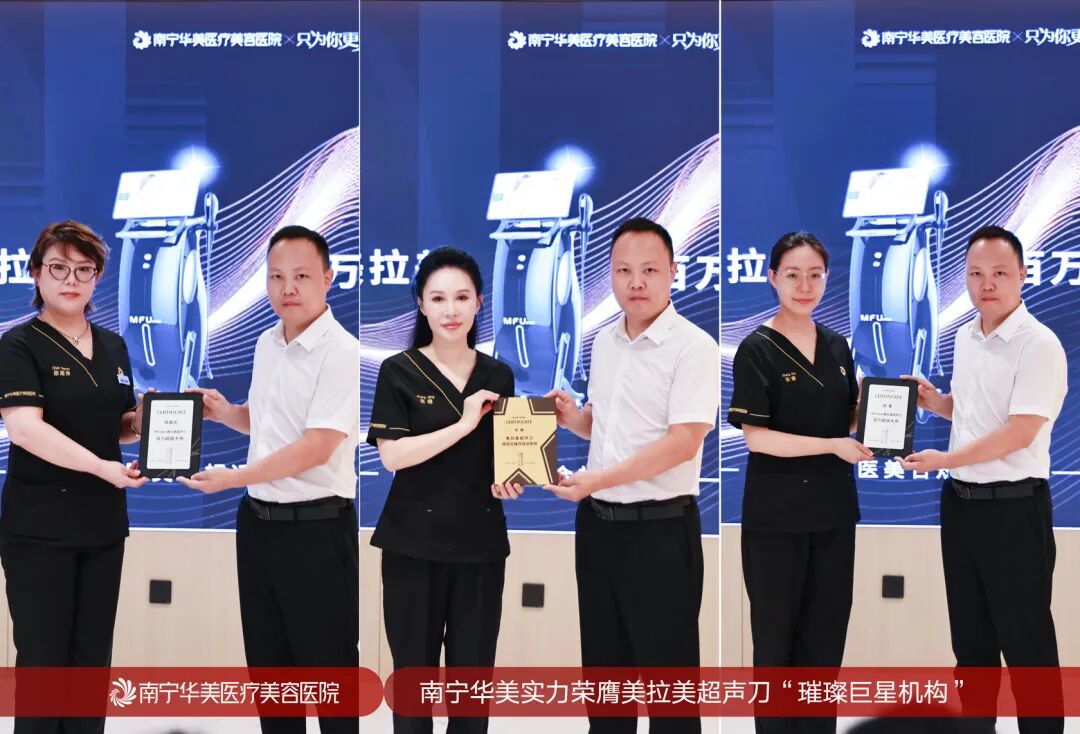 與此同時,南寧華美皮膚科陳南序、張睿兩位院長,也因其在臨床案例上的出色表現(xiàn),被MFUpro美拉美超聲刀授予"百萬超級大師”榮譽稱號。
