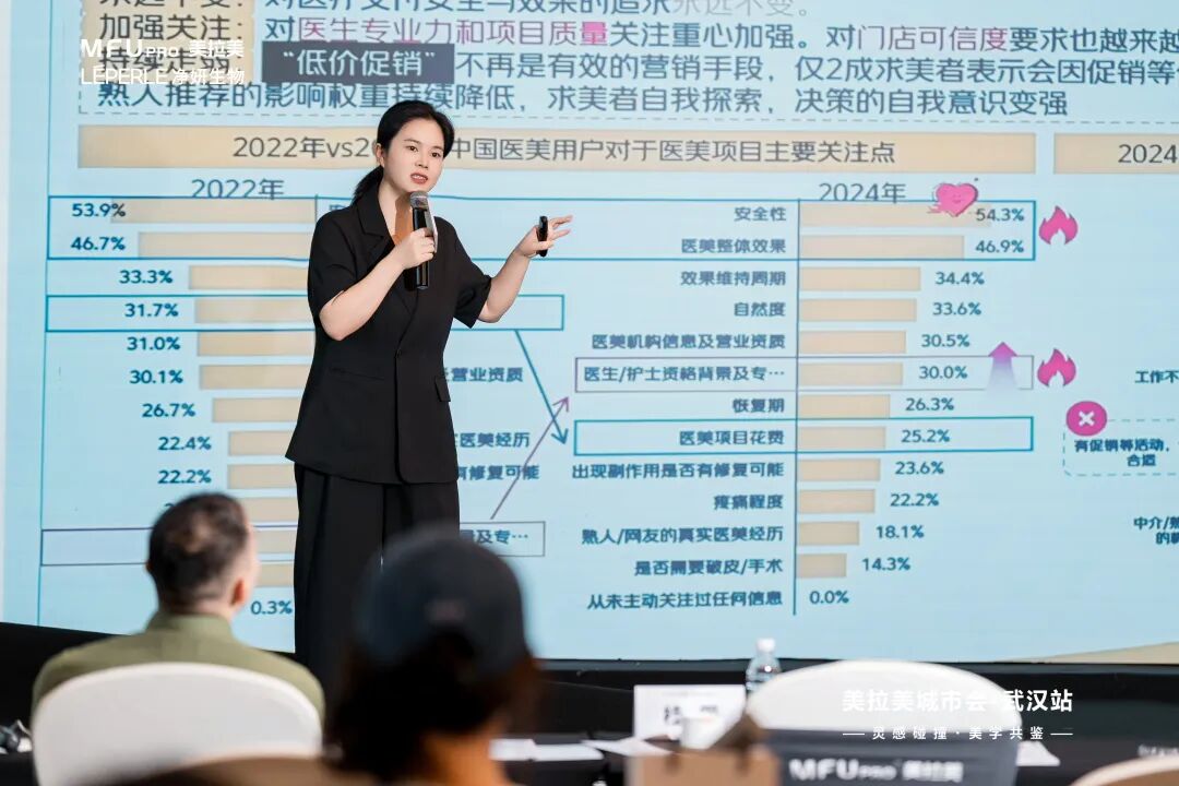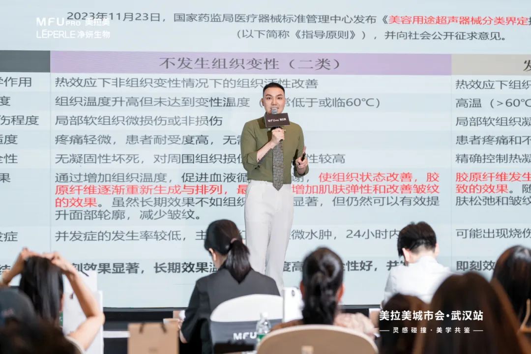 他表示:如何通過精細化運營提升MFUpro美拉美超聲刀的市場競爭力。結合美拉美超聲刀微聚焦超聲技術的卓越抗衰效果和科學的耗材成本,分享了一系列實際操作策略,包括如何優化客戶體驗、增強品牌影響力以及有效管理成本,幫助醫美機構在激烈的市場競爭中脫穎而出,為與會者提供了寶貴的實踐指導和戰略思考。