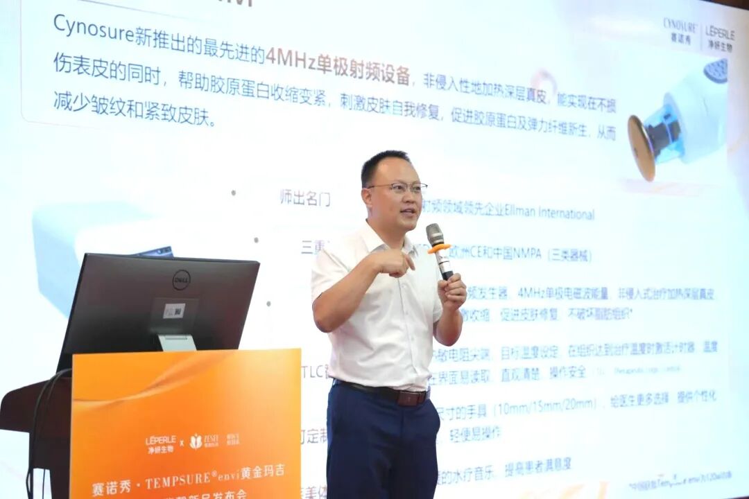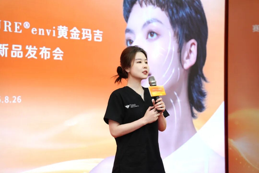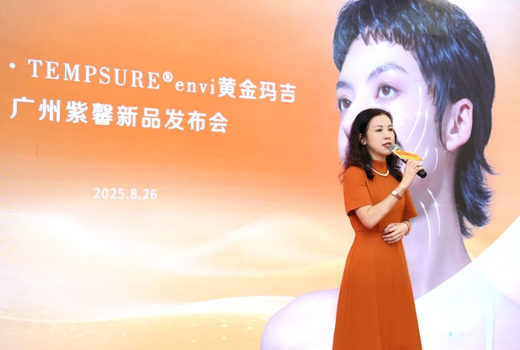 在本次新品發布上市會上,廣州紫馨副總經理、運營總監張穎姍登臺致辭。她不僅對賽諾秀·Tempsure黃金瑪吉在廣州紫馨的正式上市表示高度認可與熱烈祝賀,更表達了雙方攜手共進,共同推動中國醫美行業健康、創新發展的堅定信心與美好愿景。