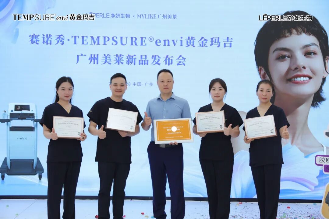 與此同時,廣州美萊皮膚科宋佳音、陶利恩、翟玲玲、劉倩文等專家主任被正式授予賽諾秀·Tempsure黃金瑪吉官方認證醫師資格,這標志著雙方未來將共同致力于為廣大求美者提供優質和專業的高階塑美需求!