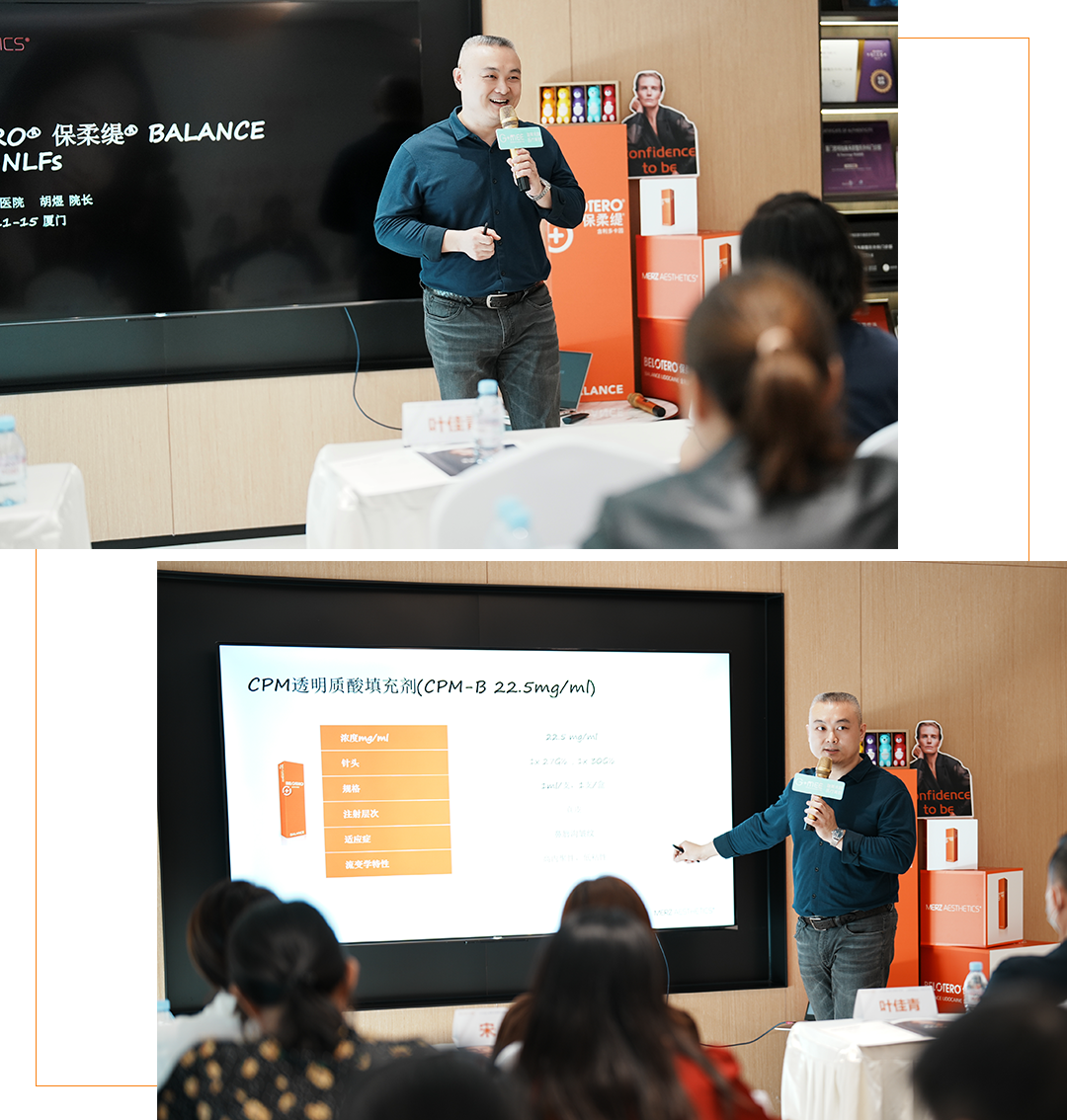 凈妍生物產(chǎn)品經(jīng)理張晗在CPM(內(nèi)聚多密度)技術(shù)保柔緹的科學(xué)與實(shí)操方面進(jìn)行詳細(xì)的講解。