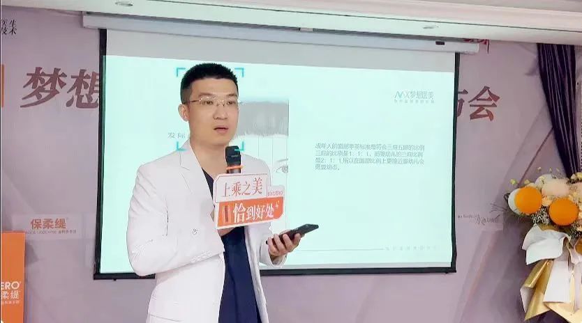 凈妍生物 省區經理申志海在會議上針對保柔緹?的專利交聯技術CPM(內聚多密度技術)得科學和實操方面進行了詳細得講解。