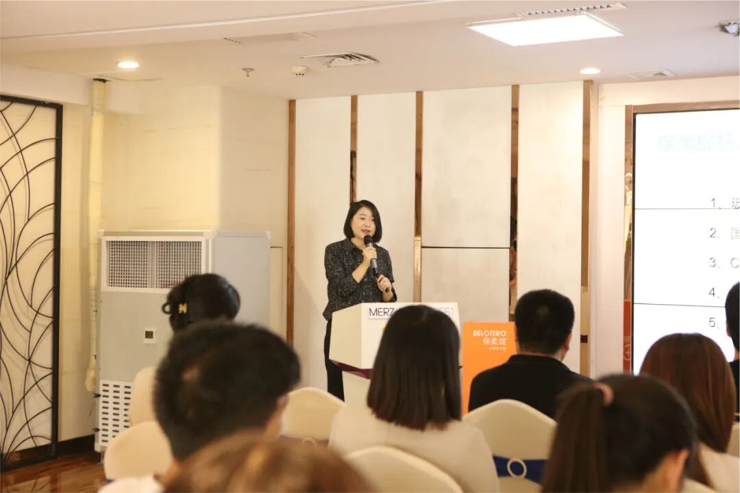 石家莊蘇亞·美聯臣醫療美容醫院院長白鵬麗在會議上針對保柔緹?的專利交聯技術CPM(內聚多密度技術)得科學和實操方面進行了詳細得講解。