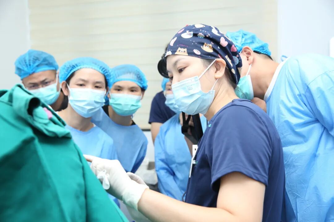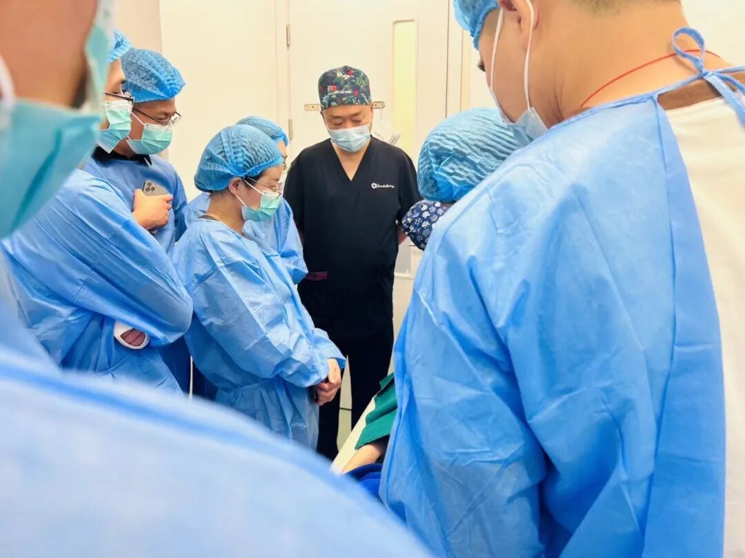 隨后,李超院長展示了QUILL快翎內固定在面部年輕化運用中的實操演示,并現場進行1對1實操教學,與醫師學者共同探討快翎內固定在輪廓抗衰中的實操應用和技術。