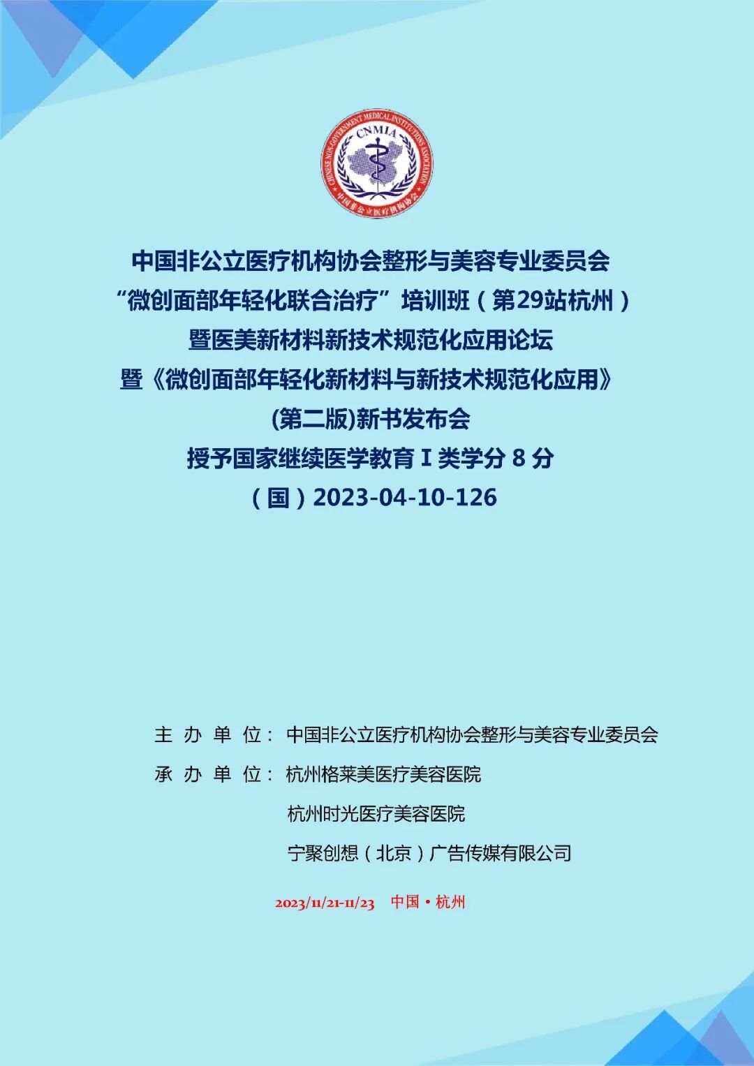 本次中國(guó)非公立醫(yī)療機(jī)構(gòu)協(xié)會(huì)整形與美容專業(yè)委員會(huì)“微創(chuàng)面部年輕化聯(lián)合治療”培訓(xùn)班(杭州站)暨醫(yī)美新材料新技術(shù)規(guī)范化應(yīng)用論壇·為國(guó)內(nèi)醫(yī)美行業(yè)帶來(lái)更高的抗衰老視野和新啟示。