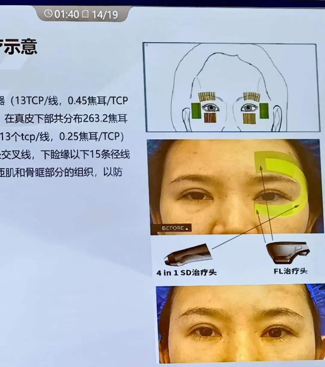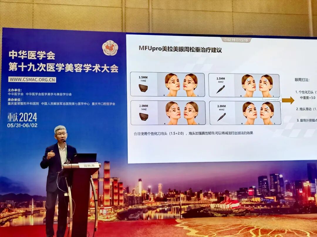 眶周區域作為面部年輕化治療中的一大難題,其松垂問題一直是眾多求美者和醫生關注的焦點。富秋濤教授在大會上分享的MFUpro美拉美最新的微聚焦超聲(MFU)科技,為解決這一難題帶來了新的曙光。