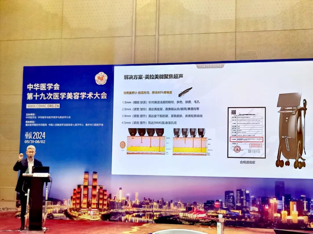 2024中華醫學會第十九次醫學美容學術大會在中國·重慶完成了為期三天(5月31日-6月2日)的精彩學術之旅!6月2日在面部緊膚提升治療專場,張歌教授和富秋濤教授聯袂剖析了MFUpro美拉美微聚焦超聲在面部年輕化抗衰治療中的特色和優勢,引爆面部年輕化抗衰治療專場。這無疑為微聚焦抗衰領域投下了一枚震撼彈,為行業注入了前所未有的活力與希望!